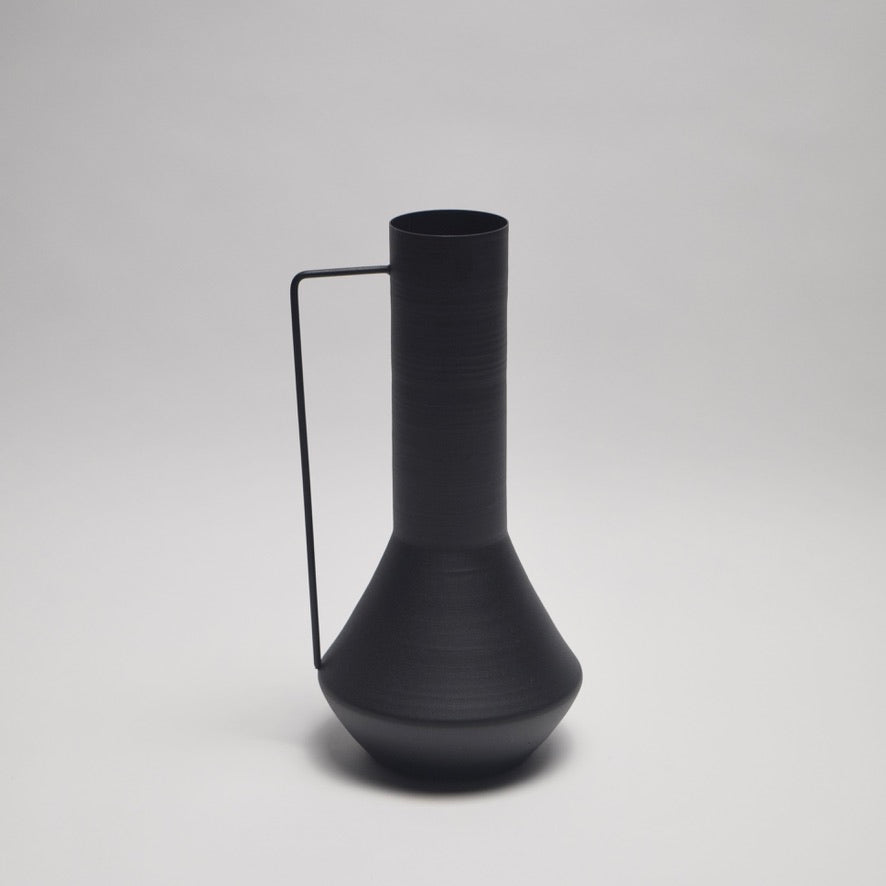 A statement piece, this vase is smooth and sleek in shape with matt black finish and a delicate, thin single handle. The vase adds a contemporary sophistication to the bundle.