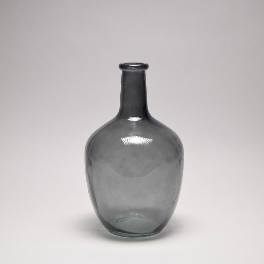 In a dark brown hue, this little glass vase has an organic shape which adds an artistic quality to the collection.