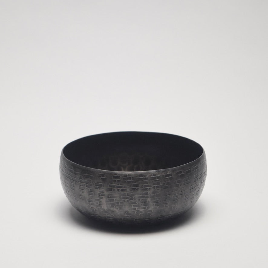 Contemporary and functional, this decorative graphite bowl with a hammered metal finish adds style, shape and texture to the bundle.